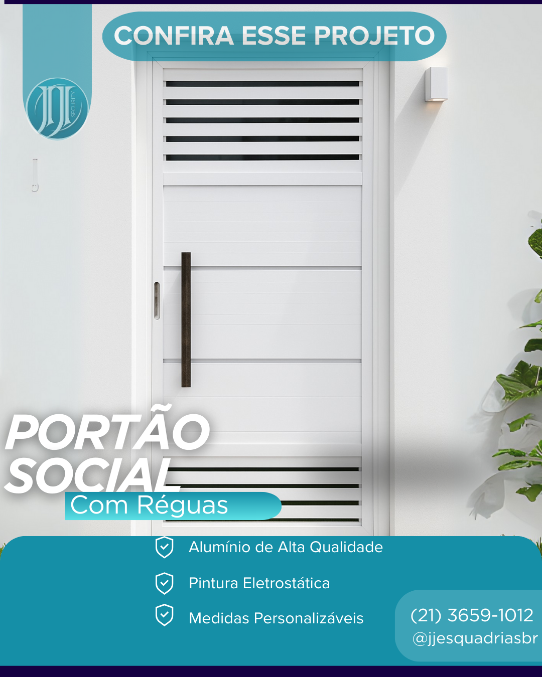 Uncategorized Portão Social em Lambril com Réguas Portão social de alumínio com design moderno, acabamento em pintura eletrostática branca e puxador vertical. A parte superior e inferior Leia Mais »